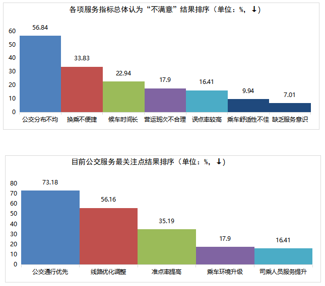 本次調(diào)查共收集有效問(wèn)卷1471份,623條相關(guān)問(wèn)題及建議。問(wèn)卷涵蓋公交線網(wǎng)優(yōu)化、文明服務(wù)、換乘便捷度、候車時(shí)間、乘車舒適度、智能信息建設(shè)等多方面內(nèi)容。調(diào)查顯示,參與投票人群年齡結(jié)構(gòu)主要集中在18~59歲,其中以40~59歲為主體。(一)公交服務(wù)滿意度指標(biāo)及數(shù)值根據(jù)交通運(yùn)輸部GB/T 36953.2-2018城市公共交通乘客滿意度評(píng)價(jià)方法,公共交通乘客滿意度指乘客對(duì)公共交通服務(wù)質(zhì)量的滿意程度,評(píng)價(jià)程度設(shè)置為“很滿意”、“滿意”、“一般”與“不滿意”。問(wèn)卷顯示荊門(mén)公交服務(wù)整體滿意度為91.96%。問(wèn)卷顯示公交線網(wǎng)分布不均、線路不合理、換乘不便捷為主要服務(wù)訴求,公交線路分布不均為“不滿意度”投票最高問(wèn)題;主干道公交優(yōu)先通行權(quán)為服務(wù)訴求投票最高關(guān)注點(diǎn)。 此次問(wèn)卷調(diào)查,感謝廣大市民乘客的積極參與,市公交集團(tuán)將結(jié)合實(shí)際,認(rèn)真聽(tīng)取、采納乘客提出的意見(jiàn)及建議,予以改進(jìn): 關(guān)于線路運(yùn)營(yíng)方面,對(duì)5路線(圣境山—?;郏?8路線(東寶碧桂園—楊家橋)、58路線(碧桂園北—漳河新區(qū)政務(wù)中心)、59路線(荊楚理工學(xué)院—掇刀區(qū)政務(wù)中心)早中晚客流高峰期加密營(yíng)運(yùn)班次和增設(shè)區(qū)間班次,對(duì)33路線(楚天學(xué)?!d化三路東)、69路線(雙喜小學(xué)—園博園東門(mén))、13路線(牌樓—園博園西門(mén))進(jìn)行線路優(yōu)化,方便沿線居民出行需求;近期擬開(kāi)通碧桂園翡翠公館至長(zhǎng)崗萬(wàn)人社區(qū)、東寶政務(wù)中心至市政務(wù)中心公交線路,具體方案正逐步規(guī)劃中。