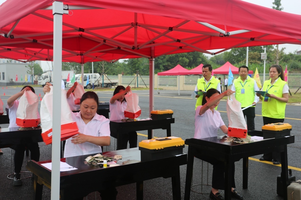 點(diǎn)鈔技能比武現(xiàn)場,6名參賽者手指翻飛,雖然現(xiàn)場觀眾眾多,但絲毫未影響其點(diǎn)鈔速度,她們憑借專注的精神和嫻熟的技能,充分展現(xiàn)著“老司機(jī)”的實(shí)力。最終,市公交集團(tuán)營業(yè)中心全云以4分02秒的速度和100%的正確率斬獲冠軍。