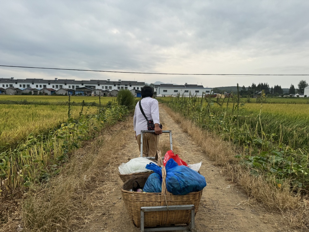 拖著滿籃蔬菜在晨光中前行,從田間到餐桌的旅程正在開(kāi)啟。