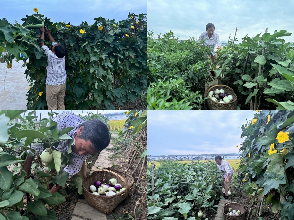 竹籃漸漸變得沉甸,被各樣蔬菜占滿,這些蔬菜將會(huì)成為餐桌上的一道道健康佳肴。