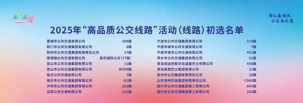 我市8路巾幗示范線入選2025年度“高品質(zhì)公交線路”!
