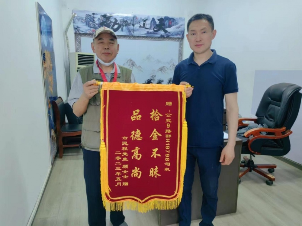 隨后,在調(diào)度人員的聯(lián)絡(luò)下,陳洋與程先生的老伴約定在荊門(mén)大家裝站臺(tái)見(jiàn)面,待車(chē)輛行駛到站臺(tái),一位老奶奶便匆忙上前,連聲道著謝將背包領(lǐng)回。由于陳洋還需要繼續(xù)營(yíng)運(yùn),老奶奶還沒(méi)來(lái)及表示感激,便匆匆道別,這才有了開(kāi)頭托程先生送錦旗的一幕。