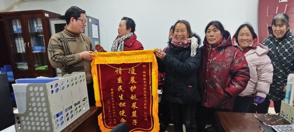 3月3日下午,荊門市掇刀區(qū)麻城鎮(zhèn)菜籃子鄉(xiāng)親代表們頂著風(fēng)雪,來到市公交集團(tuán)將一面寫著“情系民生擔(dān)使命,凌晨護(hù)航菜籃子”的錦旗送到工作人員手中,傾訴著對(duì)菜籃子專線的擁護(hù),對(duì)6路張玉成師傅優(yōu)質(zhì)服務(wù)的感激。菜籃雖小能見初心,城市的溫度正藏在每一雙接過菜籃的手掌中。